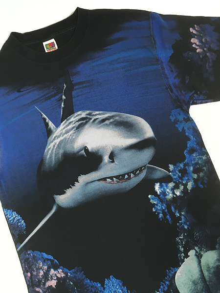 古着 90s サメ シャーク シーアニマル 海中 オールオーバー Tシャツ L 古着