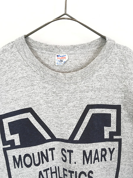古着 80s USA製 Champion 「MOUNT ST. MARY ATHLETICS」 カレッジ 霜降り 88/12ボディ Tシャツ XL 古着
