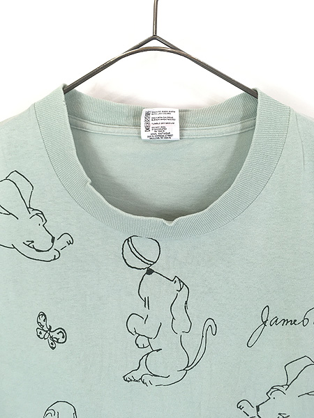 古着 90s USA製 犬 ワンちゃん マルチ アニマル アート Tシャツ L 古着