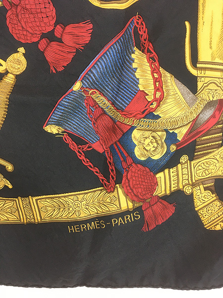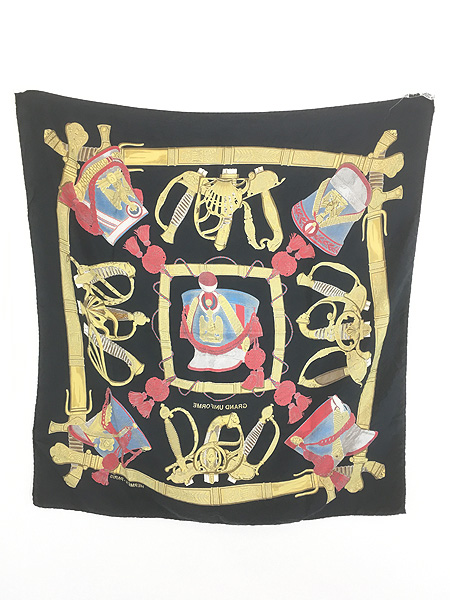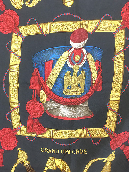 雑貨 古着 France製 HERMES カレ90 「GRAND UNIFORME」 100%シルク バンダナ スカーフ 小物 古着