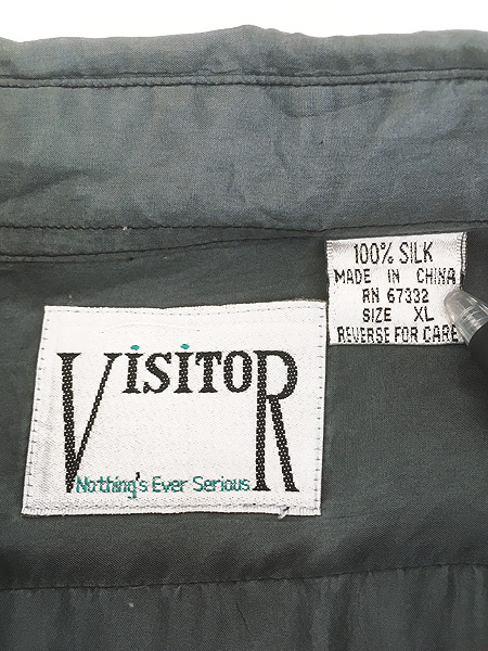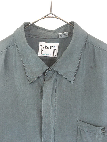 古着 90s Visitor 無地 ソリッド 比翼 100% メタリック シルク ボックス シャツ XL