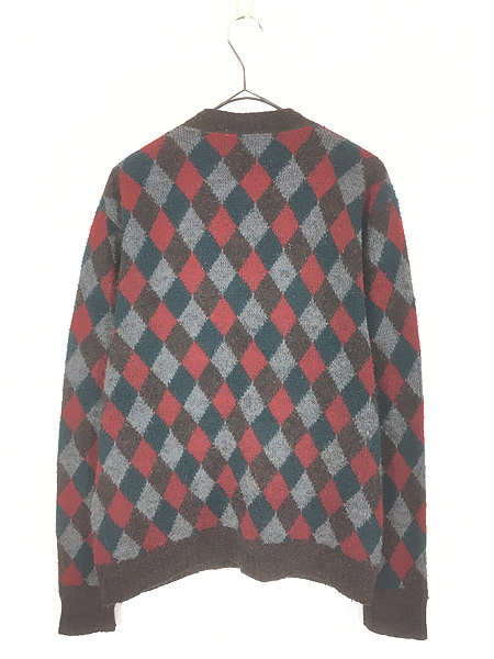 古着 60s ARROW ダイヤ パターン モヘア ルック シャギー アクリル ニット カーディガン 丸首 L位