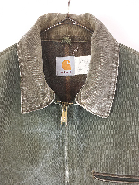 古着 90s USA製 Carhartt 裏地 チェック ブランケット モスグリーン ダック デトロイト ジャケット XL