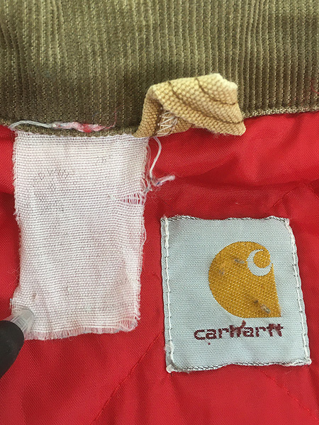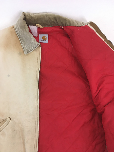 古着 80s- Carhartt レッド キルティング ライナー ブラウン ダック デトロイト ジャケット M位