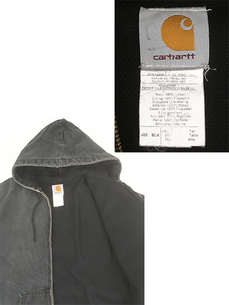 古着 00s USA製 Carhartt 裏地 メッシュ ブラック ダック アクティブ パーカー ジャケット 2XL