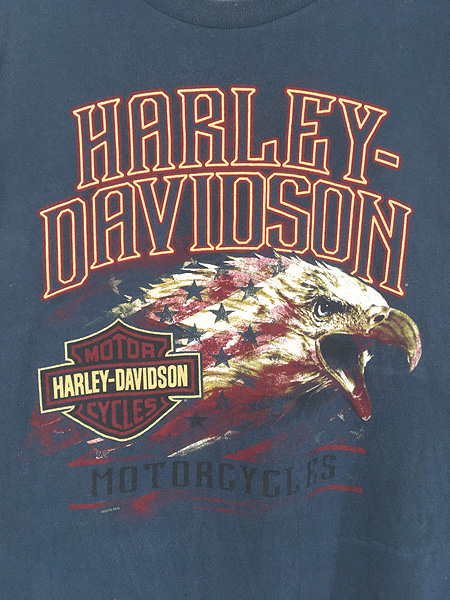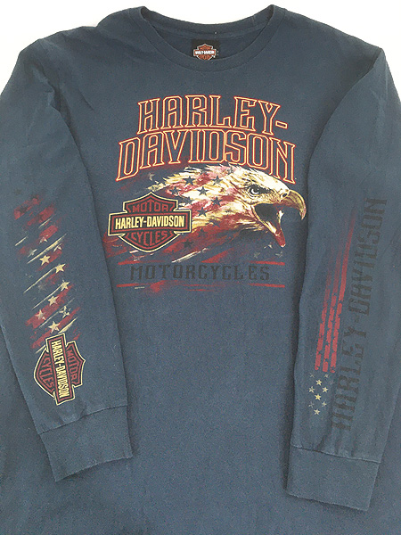 古着 10s HARLEY DAVIDSON イーグル 星条旗 バイク 長袖 Tシャツ ロンT XL