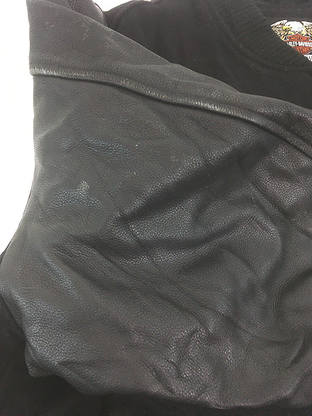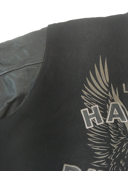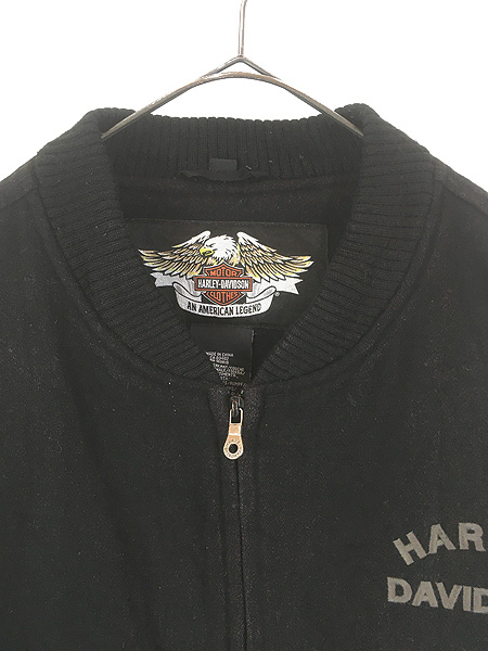 古着 HARLEY DAVIDSON 刺しゅう 本革 レザー メルトン ウール スタジャン ジャケット XL位