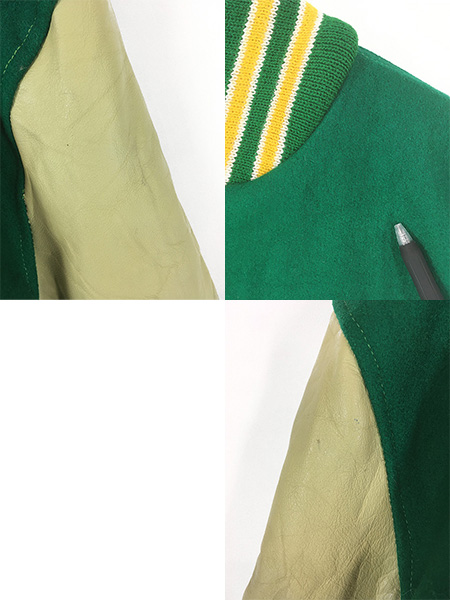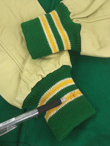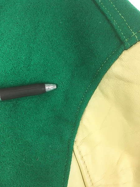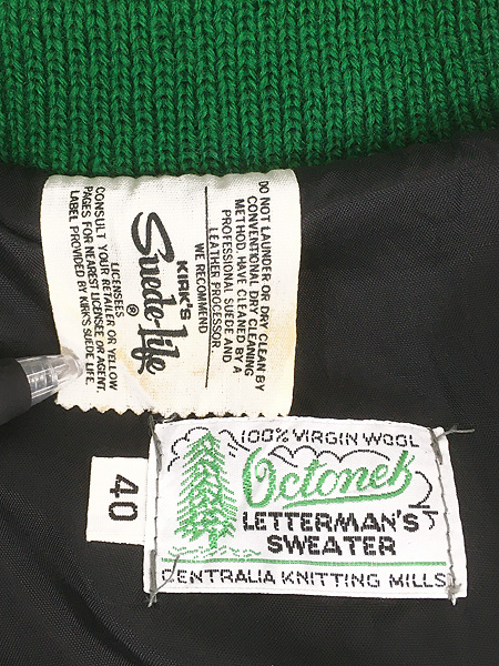 古着 70s Octonek 本革 レザー袖 メルトン ウール スタジアム ジャケット スタジャン 40