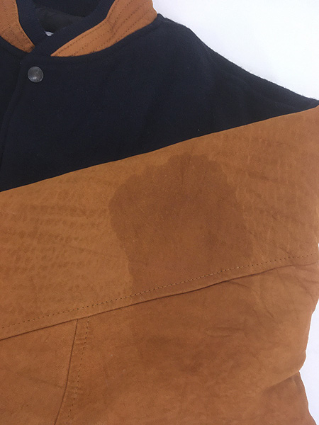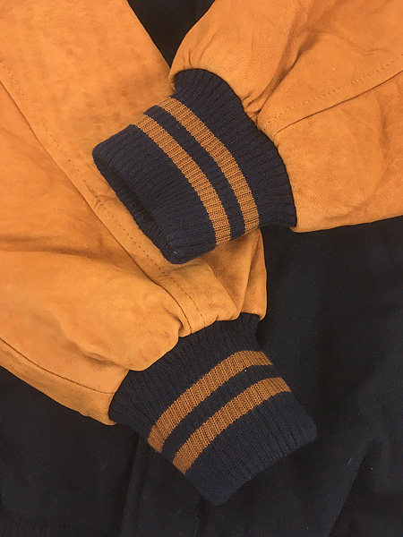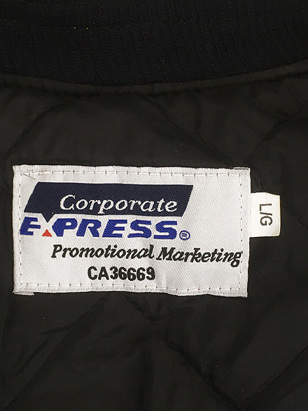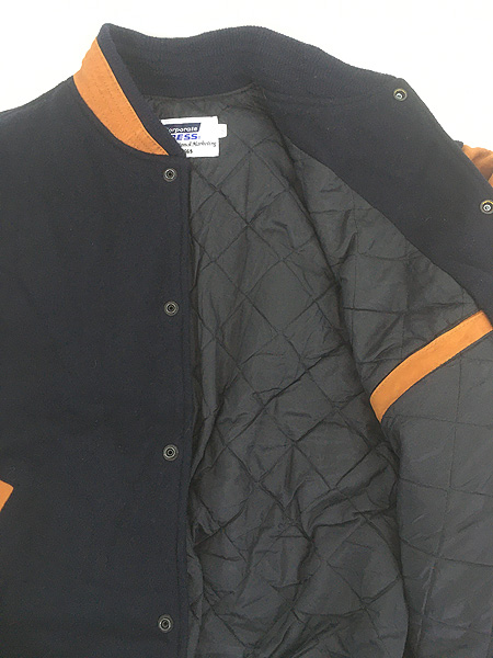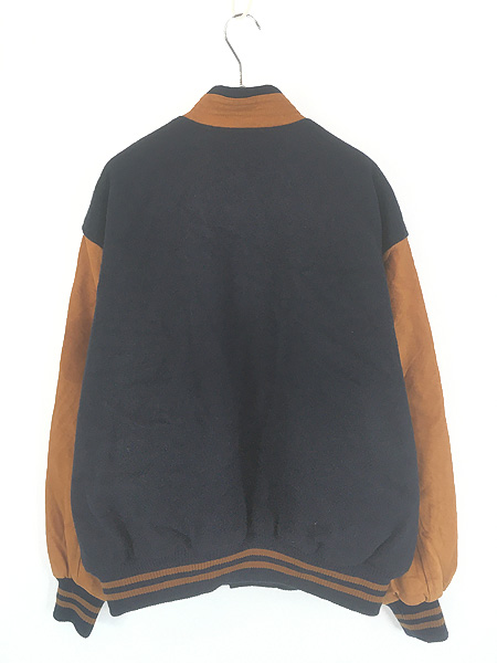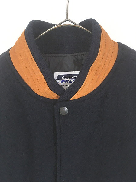 古着 Canada製 EXPRESS 本革 レザー袖 「IBM」 刺しゅう メルトン ウール スタジアム ジャケット スタジャン L