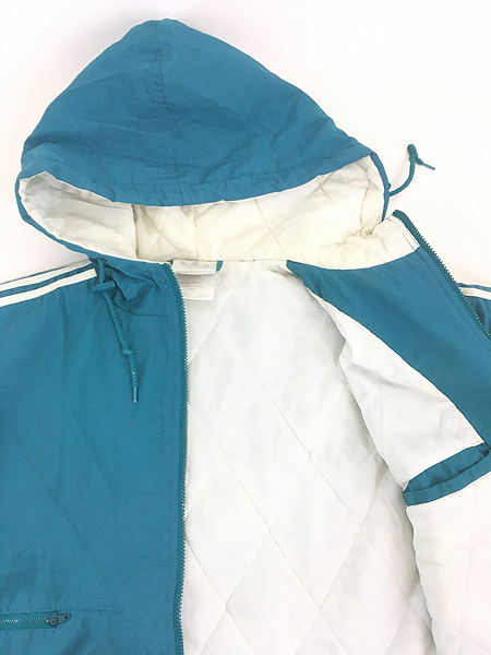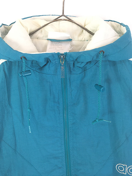 古着 90s adidas BIG ロゴ & トレフォイル パデット フーデッド ジャケット パーカー L
