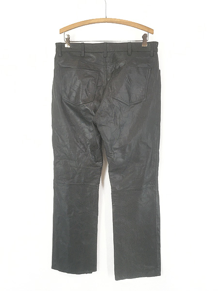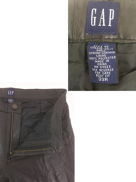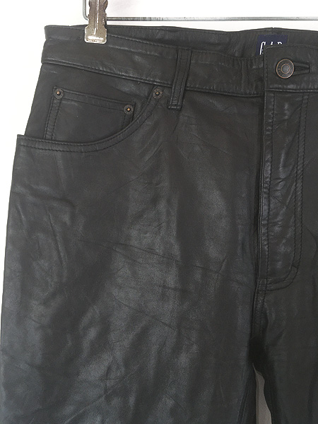 古着 00s GAP 5ポケット 本革 レザー パンツ ストレート ブラック 33R