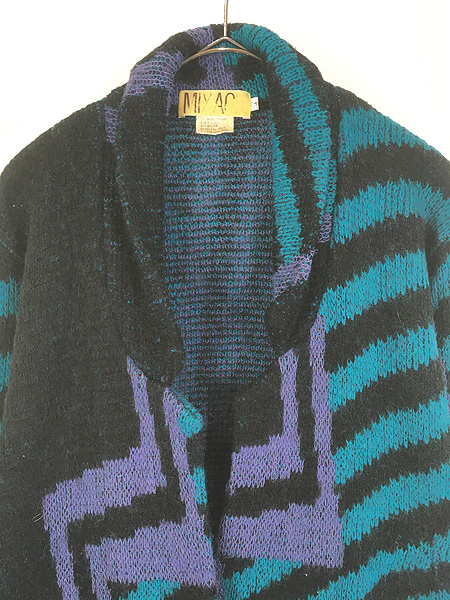 レディース 古着 90s MIXAGE ボーダー 幾何学 ウール モヘア ニット ロング カーディガン コート 36 L位