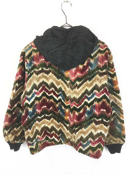 レディース 古着 50-60s カラフル シェブロン ストライプ 2way 光沢 ベロア ジャガード ジャケット M位