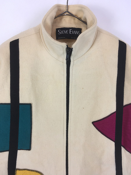 レディース 古着 80s USA製 STEVE EVANS カラフル モンドリアン風 ウール コート L位