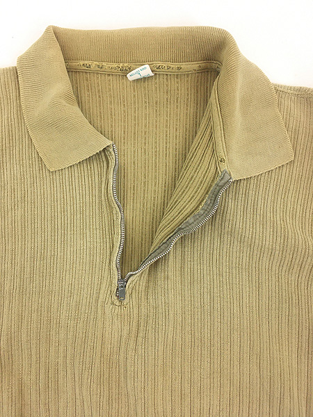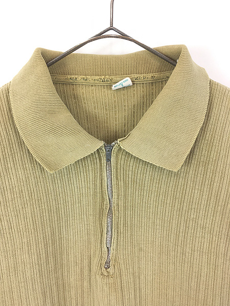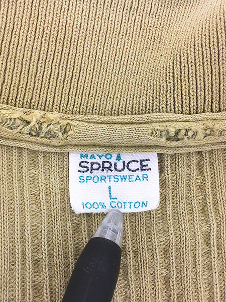 古着 50s Mayo Spruce 無地 ソリッド 襟付き ハーフジップ 100%コットン 針抜き スウェット トレーナー マスタード L