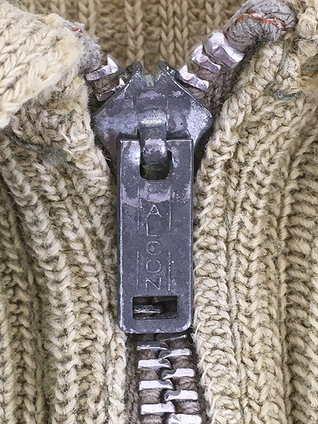 硬さのある100%コットンスウェット・ニット襟・コの字FALCONジップ・リブ2本針縫製・セットイン。