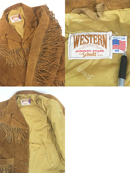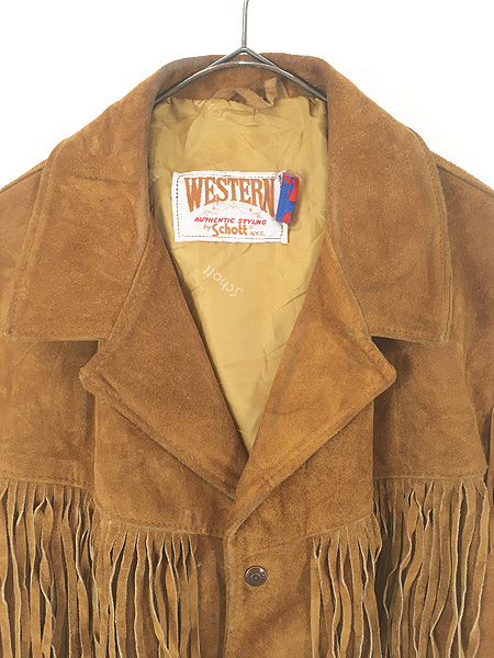古着 80s USA製 Western by Schott フリンジ ウエスタン 本革 スエード レザー ジャケット 44