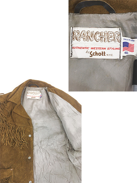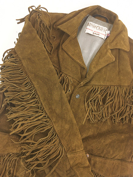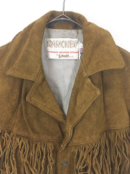 古着 70s USA製 RANCHER by Schott フリンジ ウエスタン 本革 スエード レザー ジャケット 40