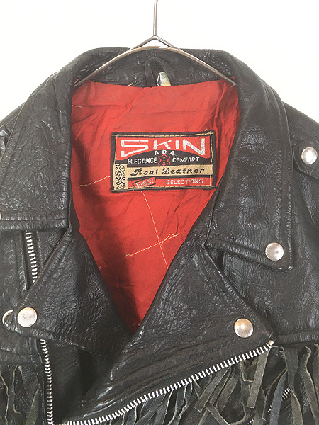 古着 80s SKIN ABA フリンジ 本革 カウハイド レザー ダブル ライダース ジャケット 42位