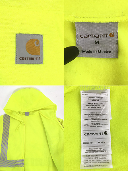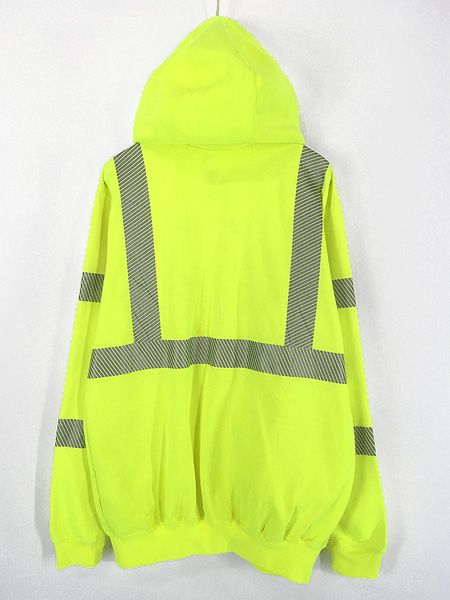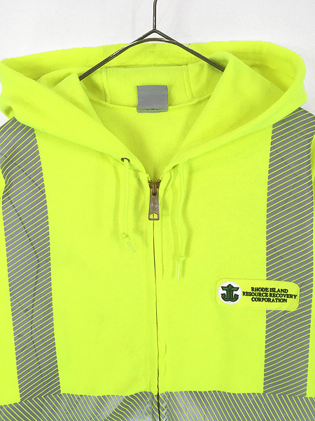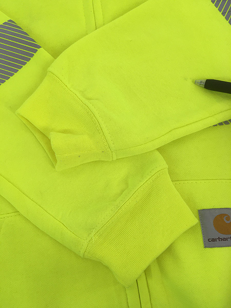 古着 Carhartt リフレクター ライン ネオン イエロー スウェット ジップ パーカー M