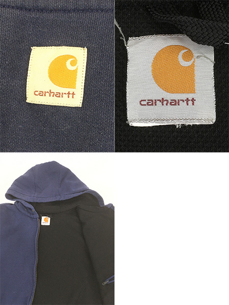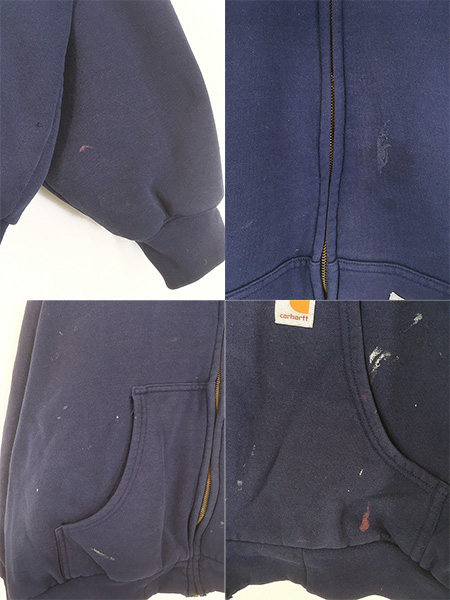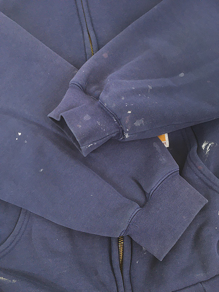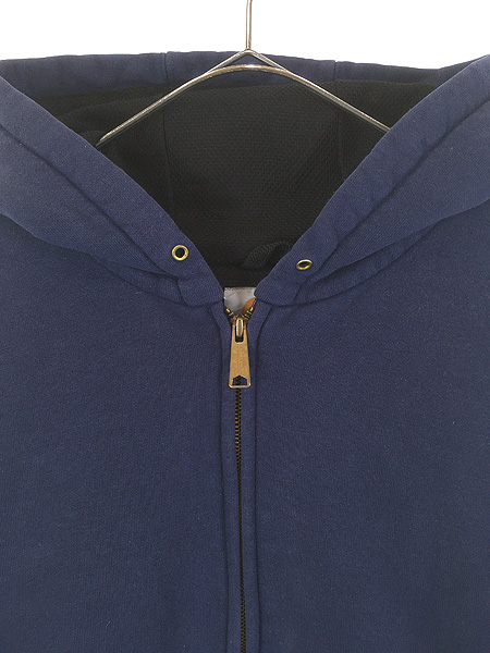 古着 90s- Carhartt 裏地 メッシュ ワンポイント パッチ スウェット ジップ パーカー ネイビー XL位