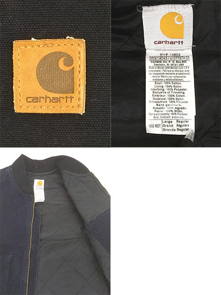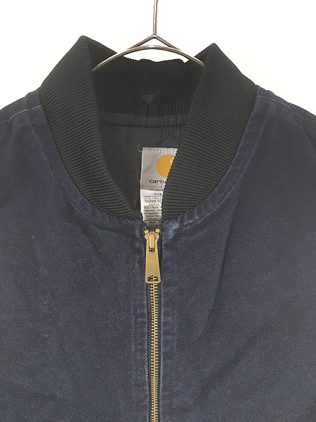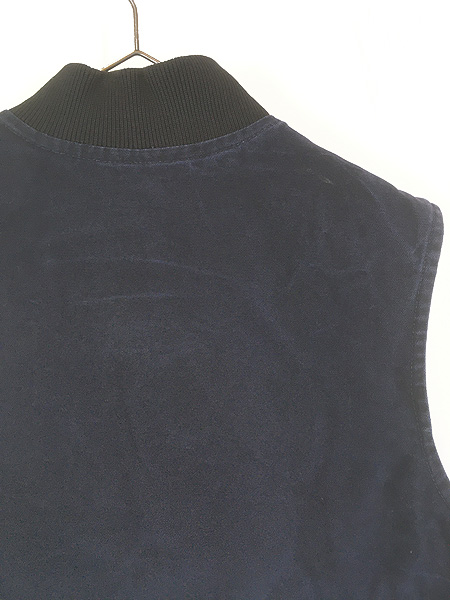 古着 00s Carhartt ペンキ MDT ネイビー ダック 首リブ パデット ベスト L