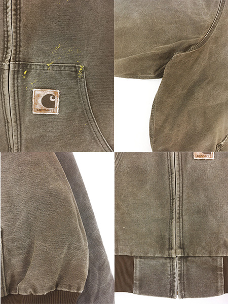 古着 90s- Carhartt フェード ダークブラウン ダック パデット アクティブ パーカー XL位