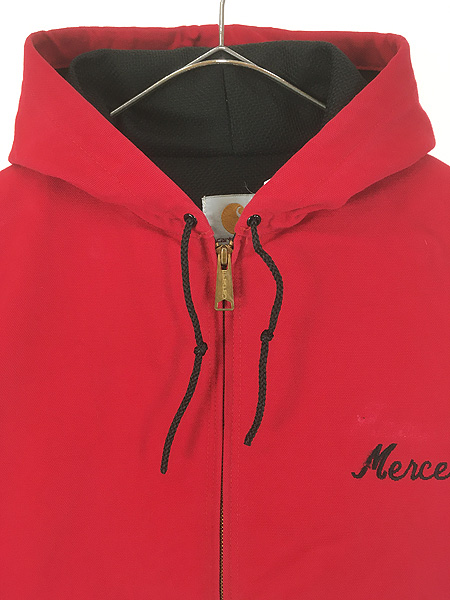 古着 90s USA製 Carhartt 裏地 メッシュ レッド ダック アクティブ パーカー ジャケット L