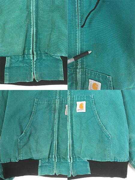 古着 80s- Carhartt 裏地 メッシュ アップルグリーン ダック アクティブ パーカー ジャケット L位