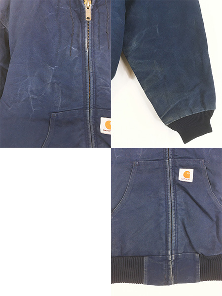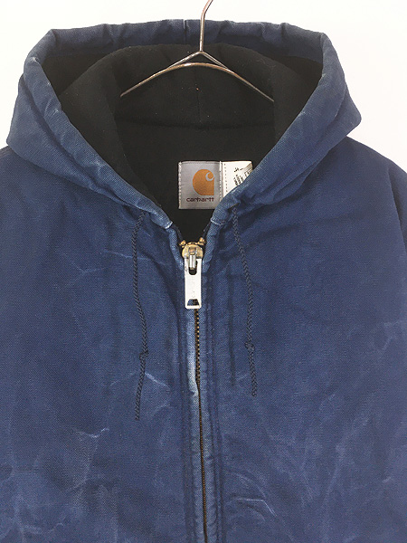 古着 90s USA製 Carhartt NVY ネイビー ダック 防寒 パデット アクティブ パーカー ジャケット L