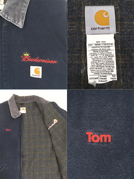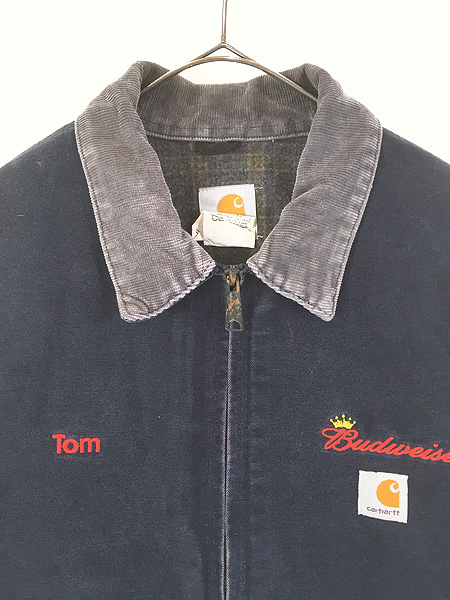 古着 00s Carhartt ノーチェストポケット 「Budweiser」 刺しゅう DNY ダークネイビー ダック デトロイト ジャケット XL 古着