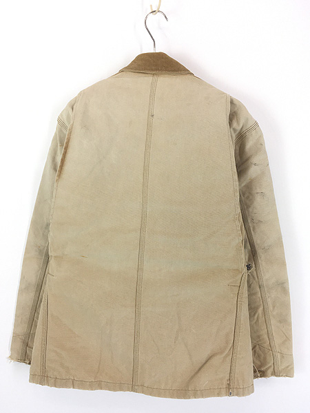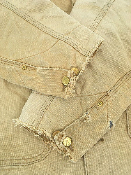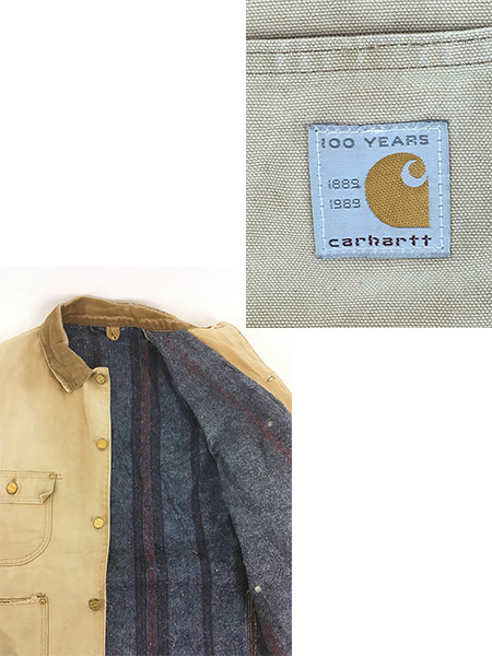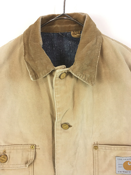 古着 80s Carhartt 「100周年記念」 フェード ブラウン ダック ミシガンチョア カバーオール ジャケット XL位
