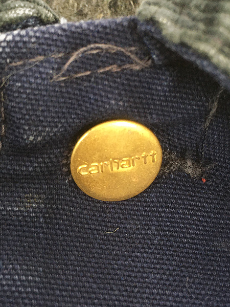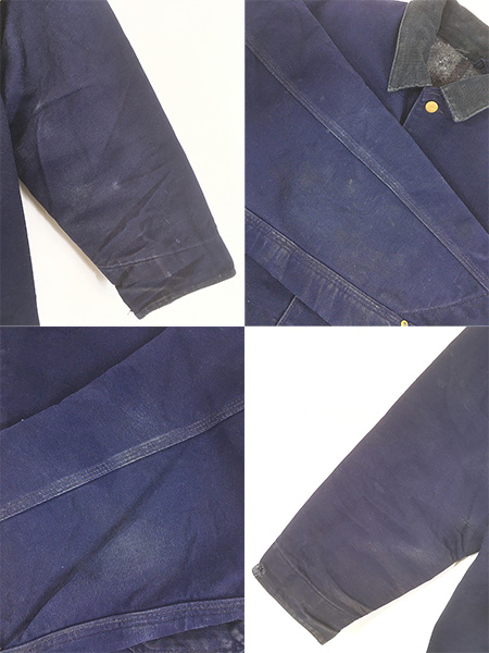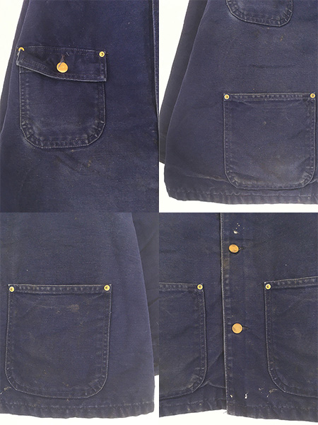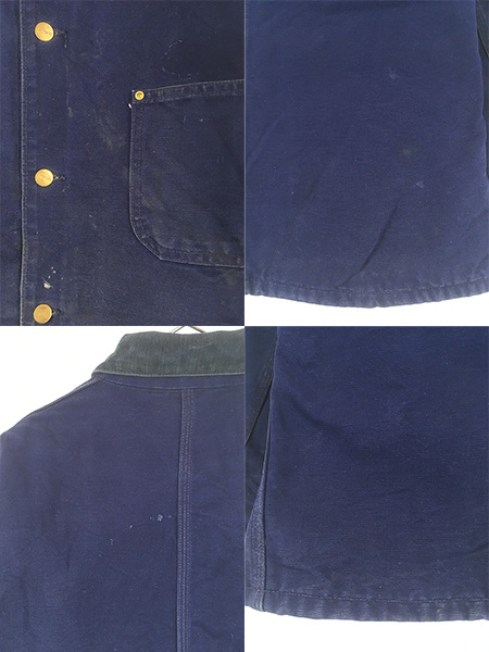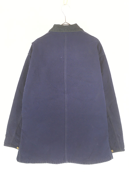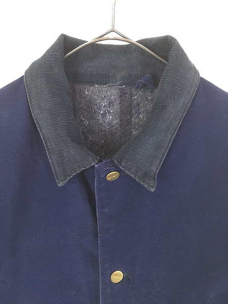 古着 80s- Carhartt 裏地 ストライプ ブランケット ダークネイビー ダック ミシガンチョア カバーオール ジャケット XL位