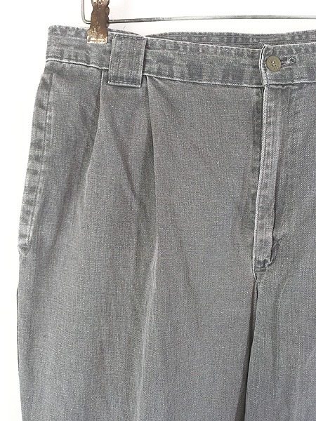 古着 90s USA製 Dockers 492-7155 グレー デニム チノ タック パンツ ジーンズ ストレート W33 L29