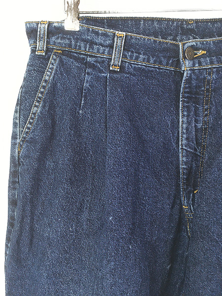 古着 80s USA製 Levi's 828-9525 濃紺 ブルー デニム チノ タック トラウザーズ パンツ ジーンズ W35 L28
