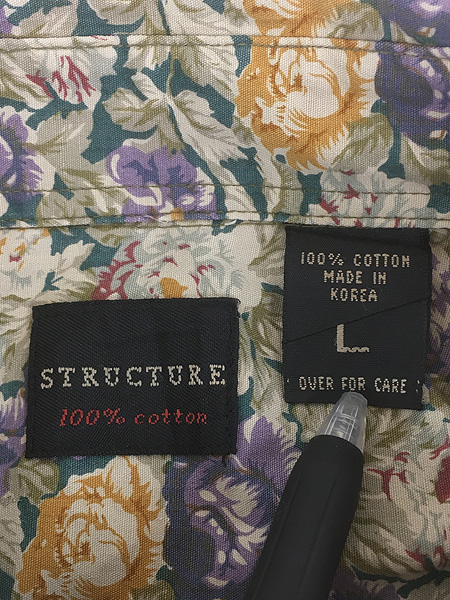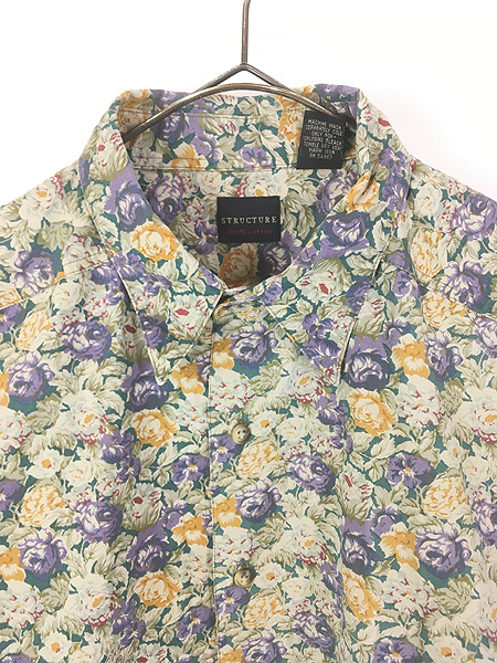 古着 90s STRUCTURE 花 フラワー アート 総柄 コットン シャツ L