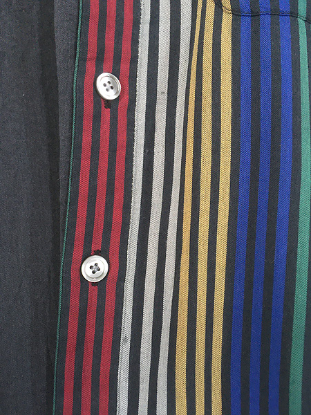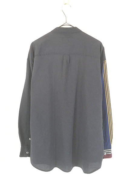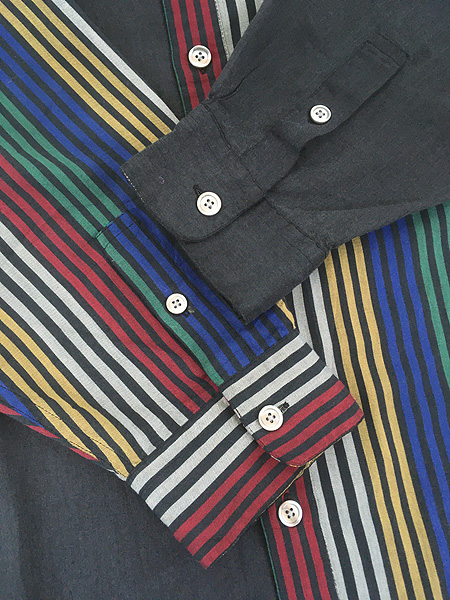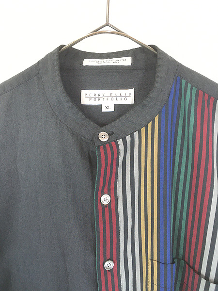 古着 90s PERRY ELLIS 図形 マルチ ストライプ コットン バンドカラー シャツ XL