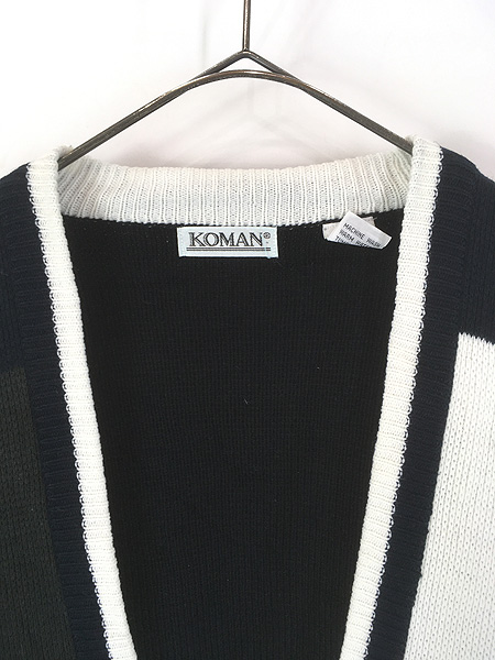 古着 90s KOMAN 3カラー アシンメトリー ローゲージ アクリル ニット カーディガン L