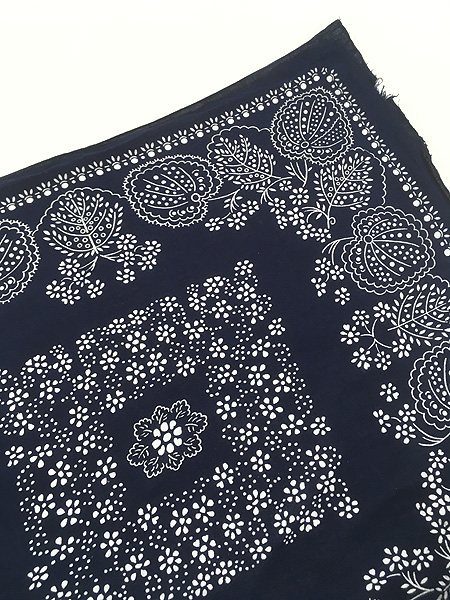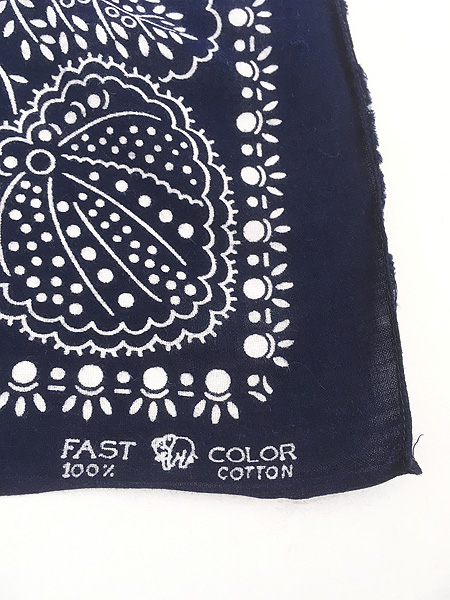 雑貨 古着 60s Elephant Brand 下鼻 FAST COLOR 花 リーフ 総柄 100% コットン ミミ付き バンダナ 小物