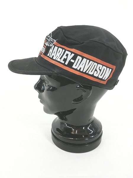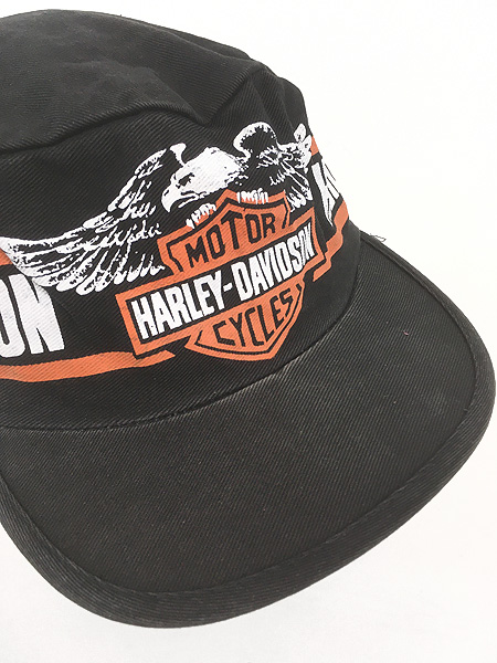 雑貨 古着 90s HARLEY DAVIDSON バー&シールド イーグル プリント コットン ワーク キャップ 帽子