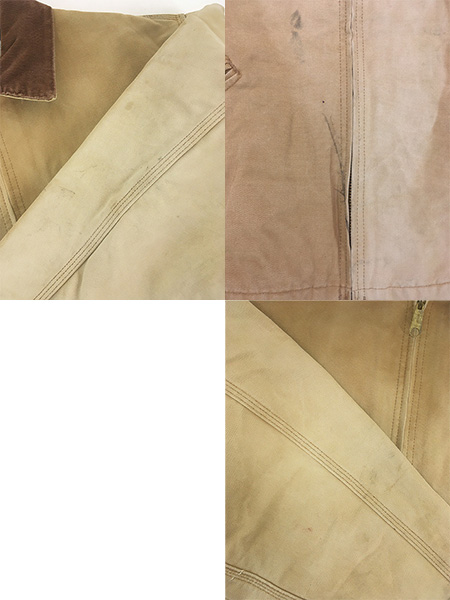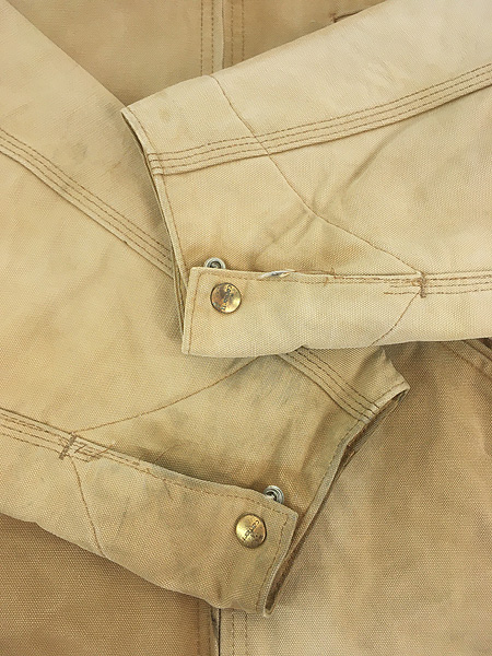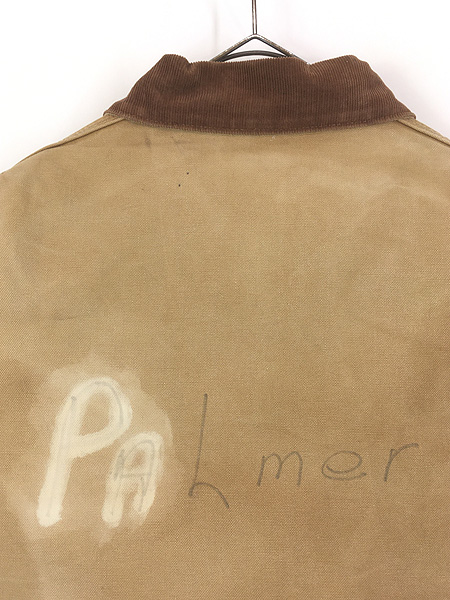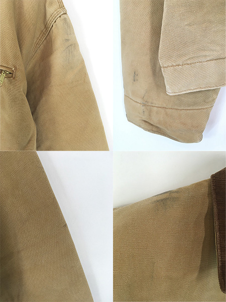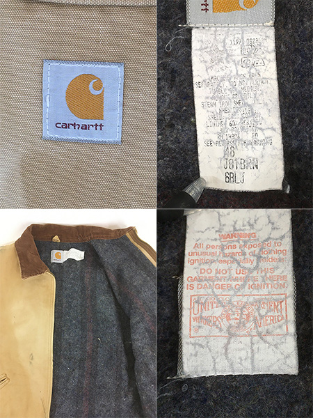 古着 80-90s USA製 Carhartt 裏地 ストライプ ブランケット フェード ブラウン ダック デトロイト ジャケット 48