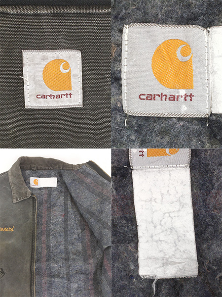 古着 80-90s Carhartt 裏地 ストライプ ブランケット グレー ダック デトロイト ジャケット XL位