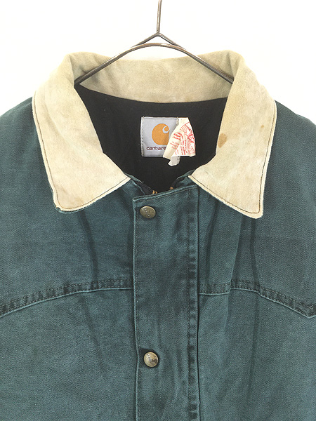 古着 80s USA製 Carhartt ウエスタンヨーク ブルー ダック 防寒 パデット ミドル ジャケット XL