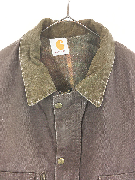 古着 Carhartt 裏地 チェック ブランケット チョコレート ダック ハンティング ジャケット XXL位