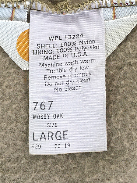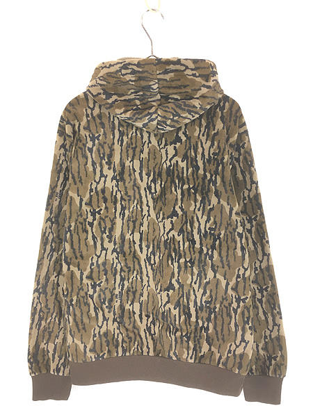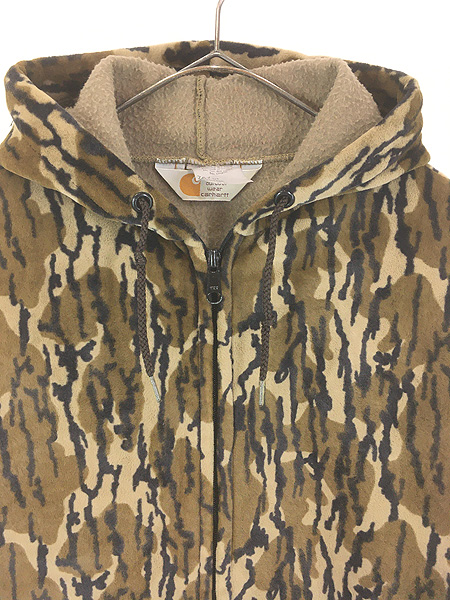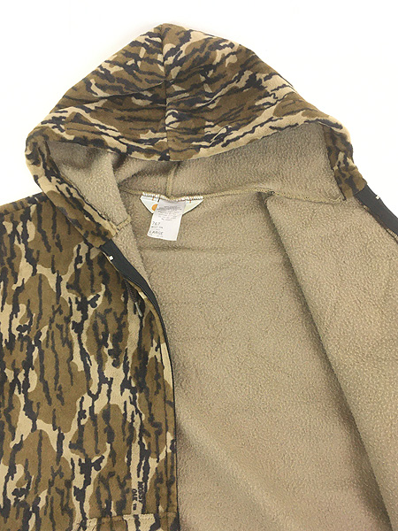古着 80s USA製 Carhartt 裏地 フリース Mossy Oak カモ 迷彩 光沢 ベロア ジップ パーカー L