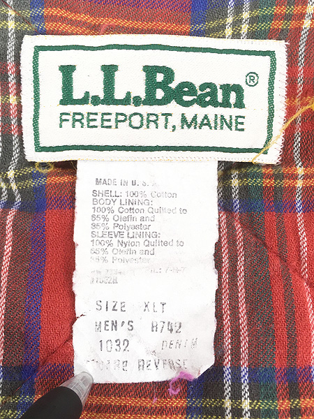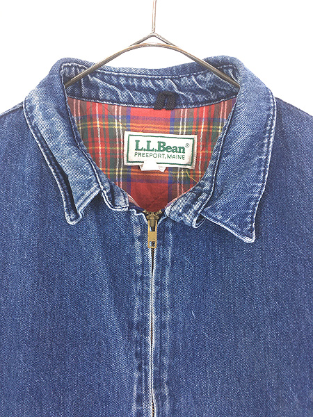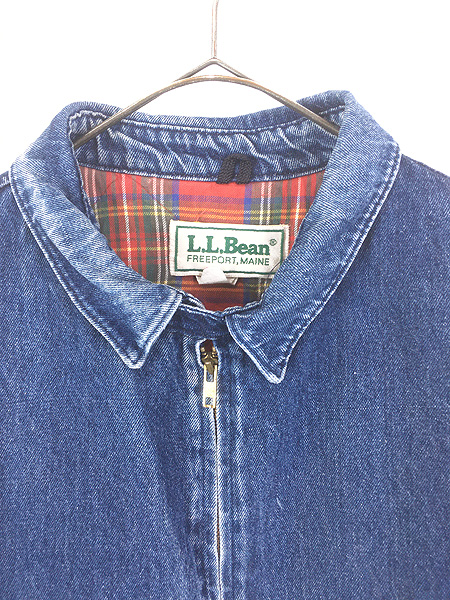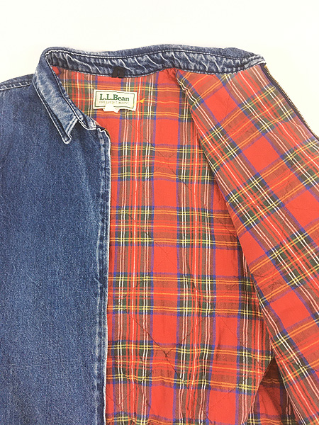 古着 80s USA製 LL Bean 裏地 チェック キルティング ブルー デニム コーチ ドリズラー ジャケット XL Tall
