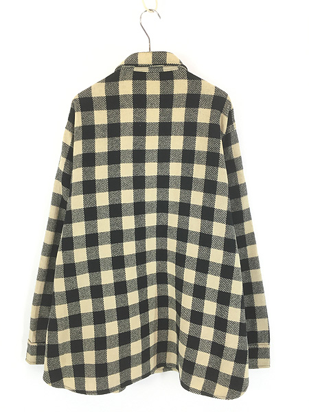 古着 80s USA製 LL Bean ブラック×オフホワイト ブロック チェック ヘビー ウール シャツ XL Tall