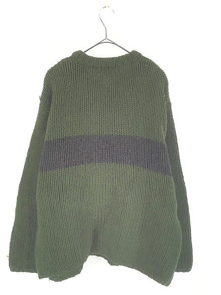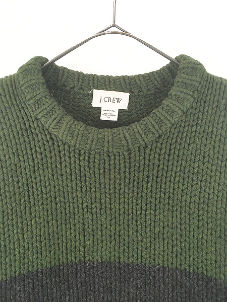 古着 00s J Crew グリーン×ブラック 2カラー ヘビー ローゲージ ウール ニット セーター XL