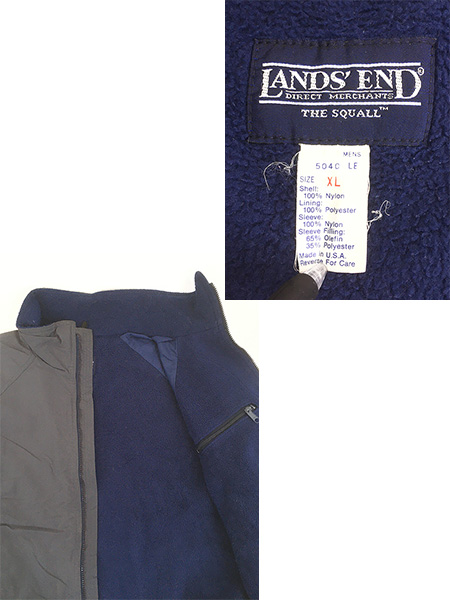 古着 90s USA製 LANDS' END 「Squall」 フリース ライナー パデッド シェルド スコール ジャケット グレー XL