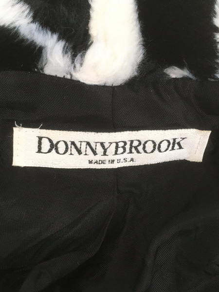 古着 80s USA製 DONNY BROOK モノトーン フェイス柄 フェイク ファー ロング コート M